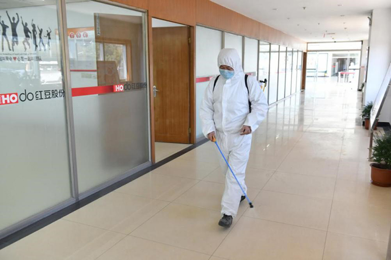 疫情期間,廠區(qū)的消毒任務(wù)是十分重要的。謝軍每天都背著噴霧器,不少于三次對工廠的各個角落進(jìn)行消毒。“每天背著這個,感覺自己像是在給花澆水的園丁。”謝軍開玩笑的說。
