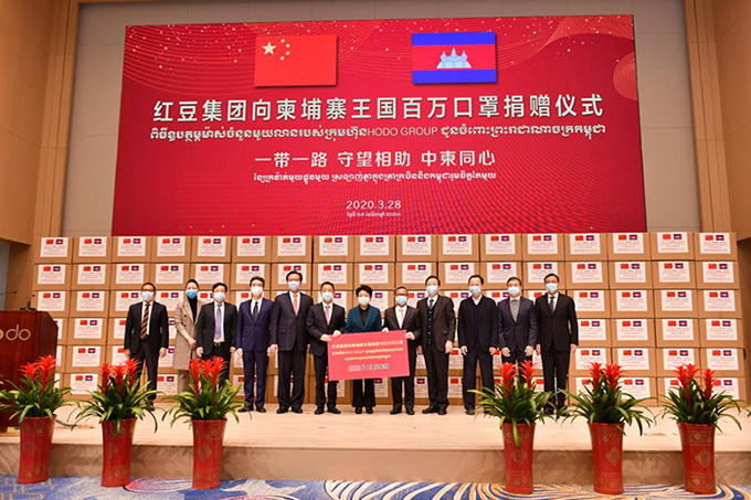 記者了解到,此前3月28日作為在柬投資、主導開發西港特區的中國龍頭企業——紅豆集團,專門向柬埔寨王國捐贈了100萬只口罩?!盎茧y見真情”。在柬埔寨疫情防控進入攻堅期,紅豆人以實際行動表達了中國人民對洪森首相英明領導的一份敬意,對柬埔寨人民的一份深厚情意。