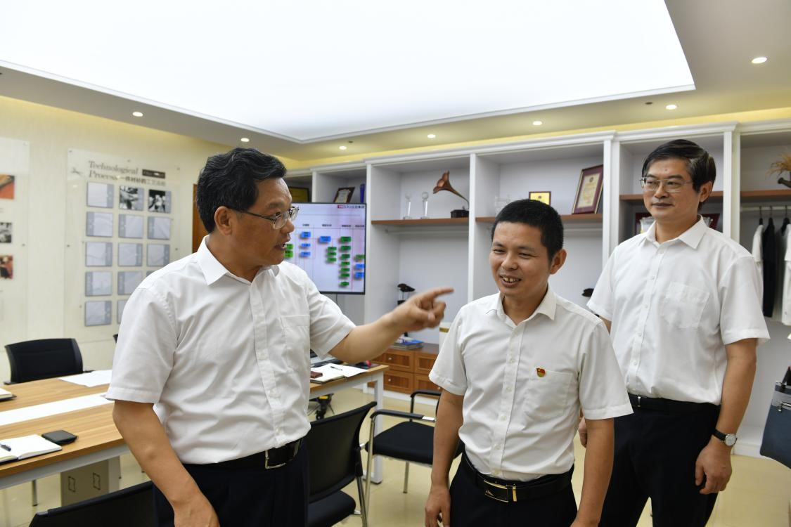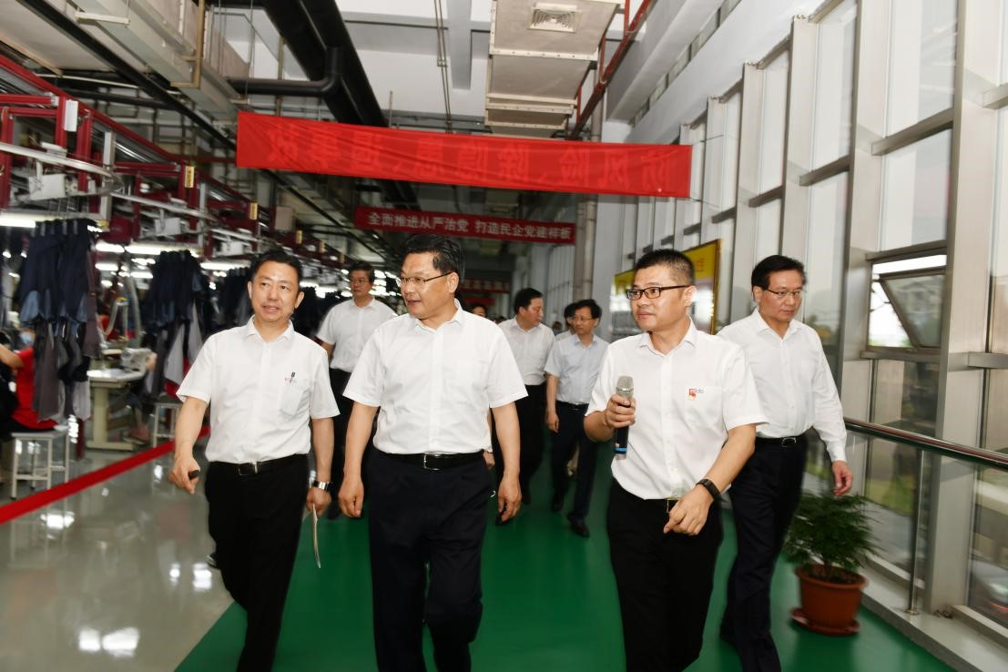 任振鶴一行先后參觀了紅豆展館、紅豆職工之家、紅豆西服車間、勞模工作室和紅豆通用半鋼智能車間,觀看了紅豆產(chǎn)改、黨建宣傳片,詳細(xì)聽取了紅豆集團(tuán)黨委書記、董事局主席兼CEO周海江介紹的“黨建帶工建、培育新時(shí)代產(chǎn)業(yè)工人”等方面工作的開展情況。他對紅豆創(chuàng)立的現(xiàn)代企業(yè)制度+企業(yè)黨建+社會責(zé)任“三位一體”的中國特色現(xiàn)代企業(yè)制度表現(xiàn)出濃厚興趣,對紅豆集團(tuán)將黨建和現(xiàn)代企業(yè)制度有機(jī)結(jié)合、黨建文化和企業(yè)文化深度融合、黨建引領(lǐng)工建的做法給予肯定。
