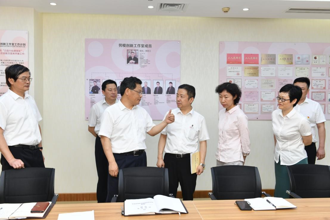 在勞模工作室,全國勞模候選人郭軍偉向任振鶴介紹了近期開展的襯衫、西服智能化個(gè)性定制項(xiàng)目,任振鶴對這一項(xiàng)目的產(chǎn)業(yè)化十分看好。他表示,紅豆堅(jiān)持以黨建為引領(lǐng)、產(chǎn)改為引擎,率先創(chuàng)新機(jī)制、搭建平臺,大力弘揚(yáng)勞模精神、工匠精神,充分給予了產(chǎn)業(yè)工人出彩的機(jī)會。全國勞模、省勞模和市勞模遍布紅豆各層級,形成了一支勞模梯隊(duì),激發(fā)出更多員工的創(chuàng)新創(chuàng)業(yè)熱情,使企業(yè)煥發(fā)出無限生機(jī)。