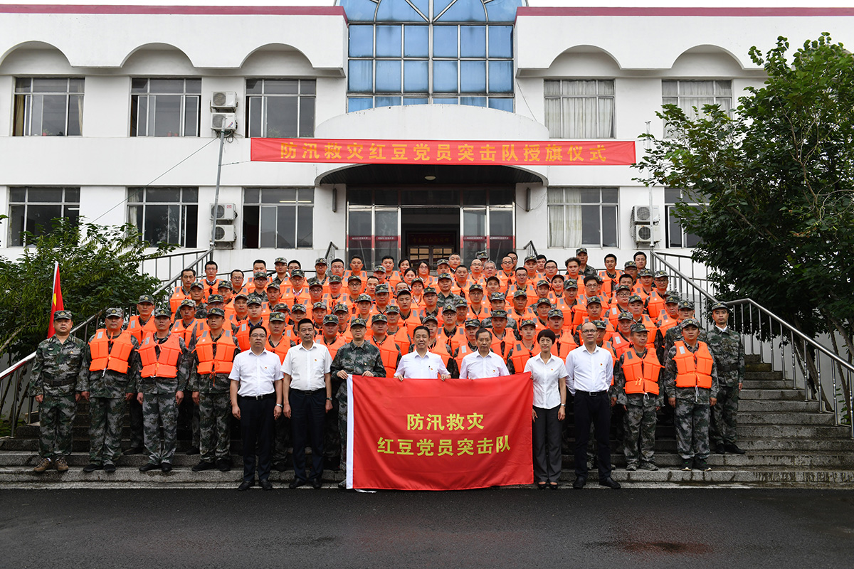 黨有號召,紅豆必應;國有需要,紅豆必有為。7月19日,紅豆黨委第一時間組織學習了中央組織部文件,并作出了成立防汛救災黨員突擊隊的決定。7月20日,紅豆集團人武部第一時間舉行防汛救災黨員突擊隊授旗儀式,集團黨委書記周海江向突擊隊授旗,100名黨員突擊隊向黨旗莊嚴宣誓。