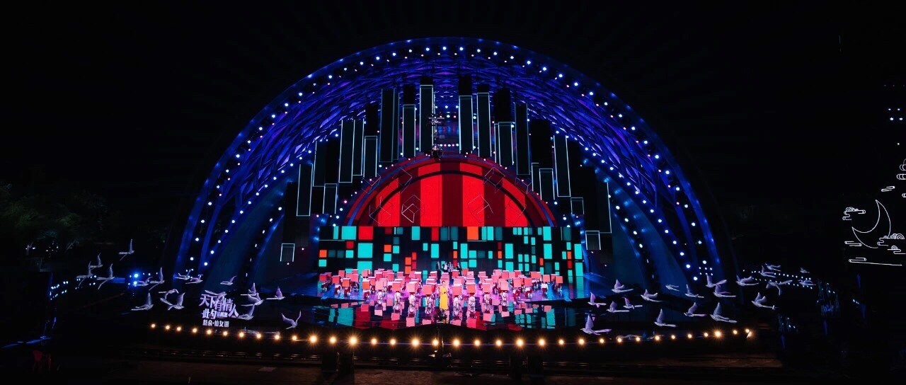 從2016年首度合作至今,紅豆集團(tuán)聯(lián)合央視推出七夕特別節(jié)目已經(jīng)走過了五個(gè)年頭,也是這臺(tái)晚會(huì)選擇戶外錄制的第四年。2016年,紅豆為央視中國情人節(jié)特別節(jié)目隆重代言,正式拉開同央視合作的帷幕,與“天下有情人”共度浪漫七夕。2017年,這臺(tái)七夕晚會(huì)首次走出演播室,進(jìn)駐七仙女傳說之鄉(xiāng)江西新余,在旖旎的仙女湖畔搭建實(shí)景舞臺(tái),在古典風(fēng)潮與現(xiàn)代技術(shù)融合中,來了一場精妙唯美的時(shí)空穿越之旅。2018年,晚會(huì)首次在南北兩個(gè)會(huì)場平行推進(jìn),南依然是江西新余仙女湖,北則選了有著深厚七夕節(jié)文化淵源的陜西西安昆明池,南方的溫柔婉約和北方的古樸大氣在七夕交相輝映;2019年于仙女湖畔描繪“七彩七夕”,鄰水而建的舞臺(tái)與水面倒影,形成水天一色的美景,盡顯古典風(fēng)韻。